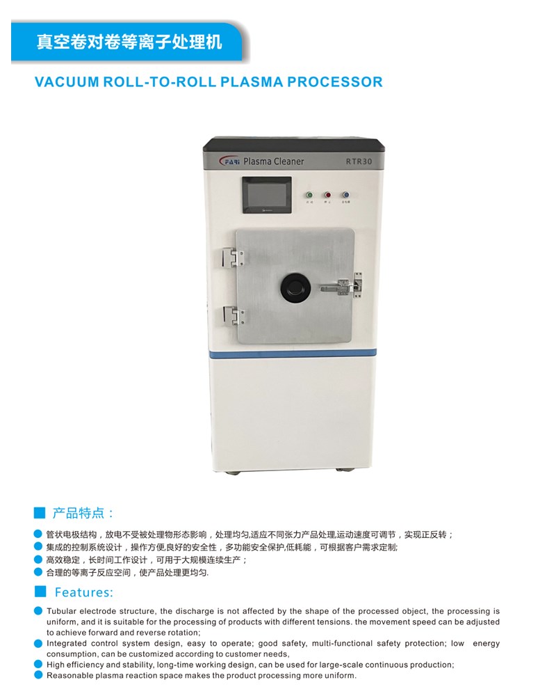 真空卷對卷等離子清洗機,主要應用于卷式材料的表面改性。
