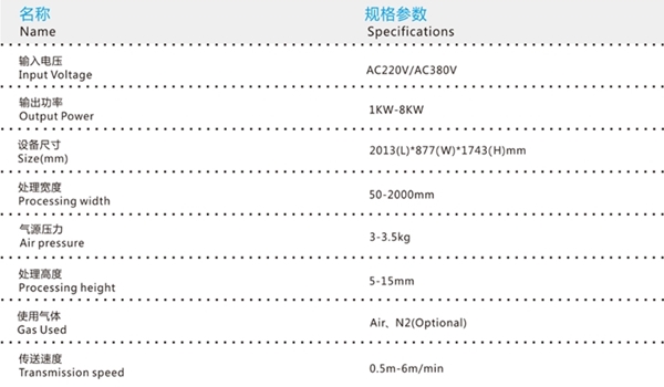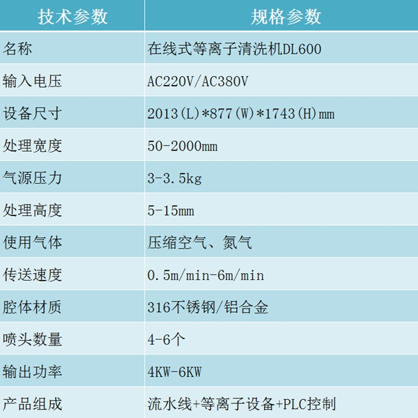 DL600在線式等離子清洗機(jī) 寬幅等離子表面處理 技術(shù)參數(shù):